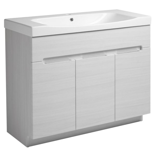 A study in geometry, the Diverge freestanding unit incorporates all the signature elements of good modern design-recessed handles, a curved form and extensive storage space.
