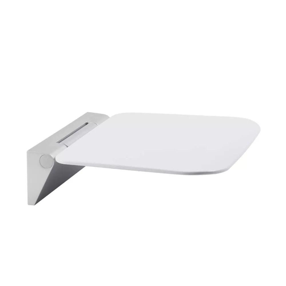 Made of tough thermoset plastic with chrome plated accents. This luxury wall mounted shower seat is made of a durable thermoset plastic and has a solid chrome hinge, making it ideal for individuals with restricted mobility. When not in use, this luxury wall-mounted shower bench folds flat against the wall.
