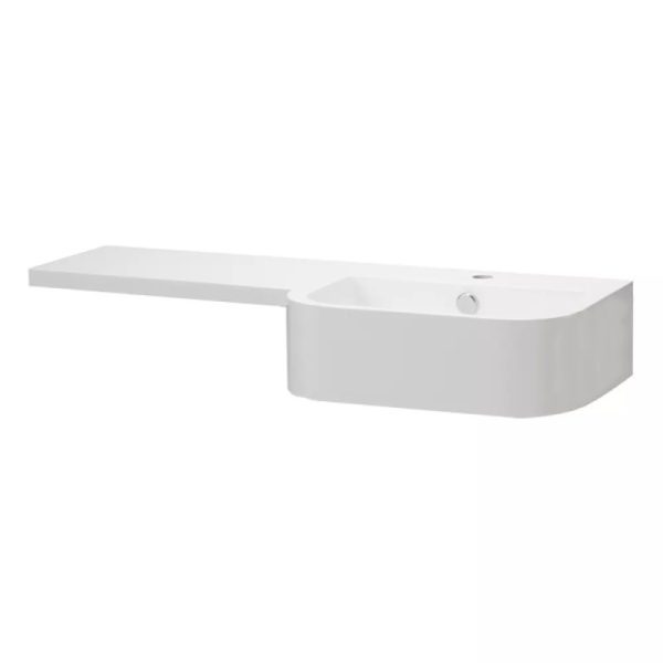 The Match 1m basin with integrated worktop area is extremely practical. It is manufactured using Isocast, a mineral substrate topped with a resilient gelcoat to give a glossy finish which is both durable and easy to clean. The look is seamless and modern. A basin depth of 380mm makes it very space efficient and it is available either left or right handed to suit your room layout. These basins are designed to be used with the Match 1m furniture runs.