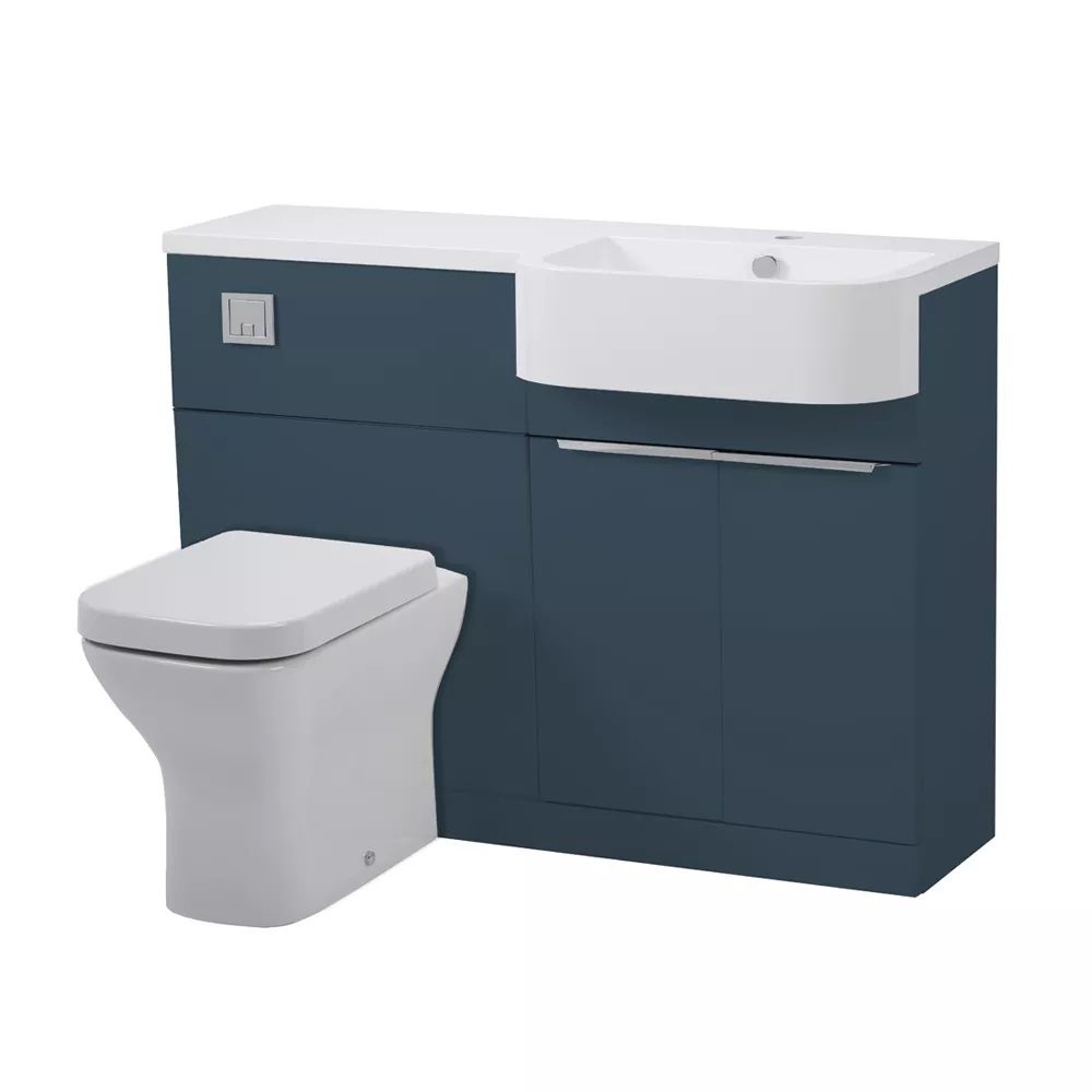Match in Oxford Blue is the perfect minimal solution for a small space and creates a seamlessly contemporary look for your bathroom. The Match bathroom furniture is set off by touches of chrome on the discrete door handles and toilet panel trim. All Tavistock furniture is made from the very best quality materials and manufacturing techniques.