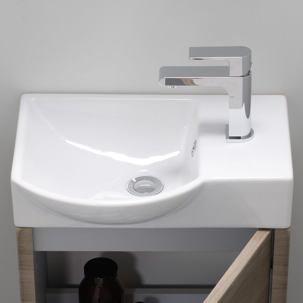 A contemporary ceramic basin. Designed to complement your Mia cloakroom unit.