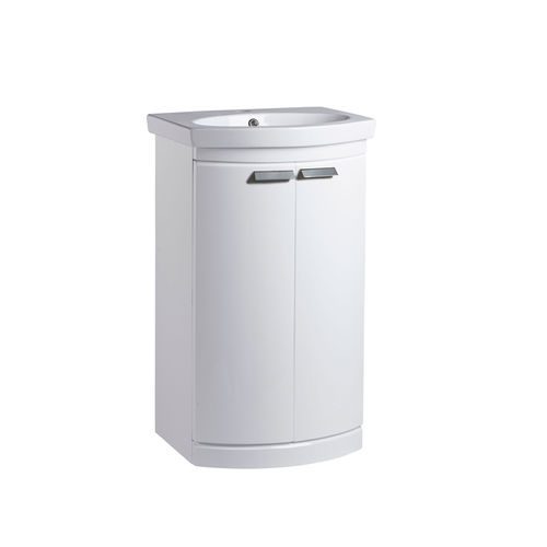 A curved front bathroom basin unit complete with an elegant chrome handles to complement the freestanding unit shape perfectly. This stylish bathroom unit features soft close doors ensuring controlled and quite drawer closure. The Tempo unit also benefits from door which have been fitted with extra wider opening hinges, giving you easy access to your bathroom bits and pieces. The Tempo range will look at home in any modern bathroom.